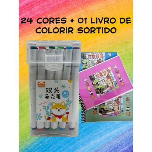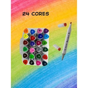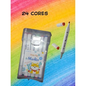01 estojo com 24 cores de canetinhas touch ponta dupla