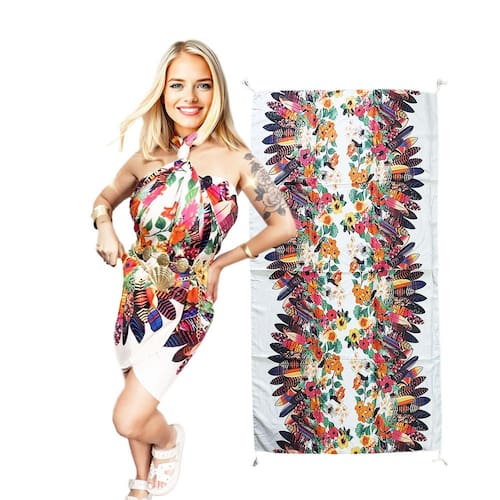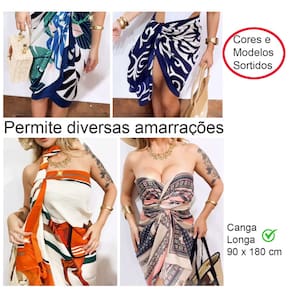 Linda Canga modelo longo 90x180 cm, permite diversas amarrações. Cores e estampas vibrantes e modernas, super tendência para você arrasar onde for.