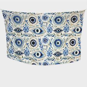 Canga/Pareô Praia e Piscina Olho Grego Folhado 1,00x1,50m - Fera Print - Azul Claro - 150
