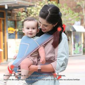Ele é fácil de usar e lavar, possui ajuste de tamanho para o bebê e para o condutor, corpo e alças acolchoadas, além de almofada removível, para um passeio confortável e seguro.