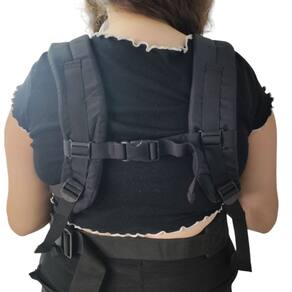 Ajuste o bebê da posição desejada e depois ajuste ao seu corpo com as alças e fivelas de segurança bem-posicionadas rente ao corpo, fazendo com que fique firme e seguro.