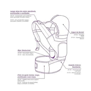 ESPECIFICAÇÕES: Modelo 5 em 1 5 Formas de carregar o seu bebê 1 de frente para o carregador à partir dos 3 meses 2 de frente para o ambiente, quando o bebê sustenta a própria cabeça à partir dos 4 meses aprox. 3 de costas para o carregador à partir do 6 meses aprox 4 e 5 assento confortável para descansar a lombar do carregador com as crianças maiores. Idade Recomendada: 3 até 24 meses aprox. Capacidade: 3,5 à 15kgs Design Ergonômico Hipseat System Largas alças de ombro ajustáveis, acolchoadas e ventiladas Fivela acolchoada para apoio das costas. Malha Respirável. Assento Interno Resistente. Cinto de apoio lombar, largo, acolchoado e com trava. Zíper Destacável. Bolso Externo. Tecido confortável e ventilado Fecho de libertação manual que facilita a colocação ou remoção do canguru Fitas largas que permitem melhor ajuste ao condutor. Ean: 7891241518682