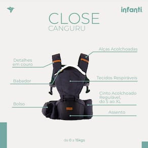 O Canguru Infanti Close 5 Em 1 - Preto é um acessório ergonômico que proporciona conforto e praticidade para os pais e seu bebê durante os passeios. Com tecidos respiráveis, oferece um ambiente aconchegante e fresco, ideal para diferentes estações do ano. Seu design acolchoado e ajustável garante uma experiência relaxante e confortável, acompanhando o crescimento da criança de forma segura.