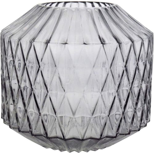 Canoe Vaso 20x22x22cm Vidro Cinza O grande destaque desse vaso de vidro é o seu belíssimo acabamento com detalhes em alto relevo e a sua forma geométrica que podem fazer toda a diferença na decoração do ambiente. Ele pode ser utilizado para trazer um toque da para dentro dos espaços ou simplesmente como um objeto de enfeite para móveis.