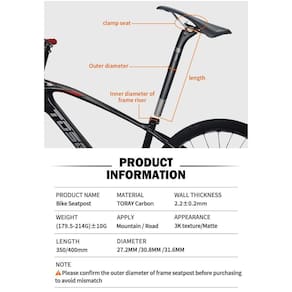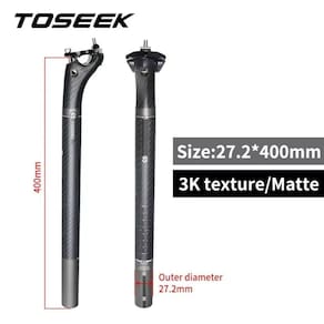 Marca: TOSEEK Material: Braçadeira Liga do Tubo + Alumínio do Carbono Deslocamento: 20 mm Tamanho do comprimento: 400 mm Diâmetro: 27.2 mm Acabamento: Carbon 3K Matte Carga Máxima: 120 KG