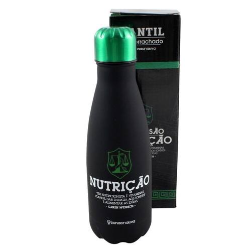 Mostre que você tem orgulho da sua profissão com este charmoso cantil emborrachado feito de alumínio. Sua tecnologia garante aderência, para que o copo não escorregue de suas mãos. Descrição Técnica: Material: Alumínio Dimensões: L8 x A 18 (cm) Capacidade: 400ml Peso: 250g Cuidados: lavar com água e sabão neutro, não usar produtos abrasivos e evitar o lado áspero da esponja.