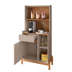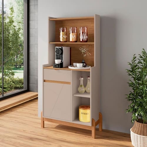O Cantinho do Café Bari foi desenvolvido para esbanjar elegância, charme e funcionalidade, tornando-se uma peça coringa para todos os ambientes. O móvel possui o tamanho ideal para você dispor os seus itens e organizá-los de maneira eficiente. Contém 1 porta com detalhe usinado e amplo espaço interno, 1 gaveta com puxador de aço pintado e prateleiras organizadoras. A estrutura é em MDF/MDP e acabamento em pintura UV de alta qualidade, o que contribui para a durabilidade e resistência do produto.