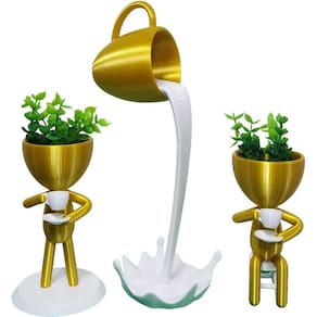 Decoração criativa e cheia de personalidade Este conjunto exclusivo combina uma peça elegante em formato de xícara derramando líquido, criando uma ilusão de movimento, com dois Vasinhos Bob Robert Tomando Café Com Plantas adoráveis em forma de personagens que seguram xícaras. Perfeitos para quem deseja um toque moderno e divertido na Decoração, são ideais para mesas, prateleiras ou espaços de convivência. Feitos com design inovador, eles transformam qualquer ambiente em uma verdadeira obra de arte Os Vasinhos Bob Robert Tomando Café Com Plantas e a Xícara Flutuante são perfeitos para quem valoriza a fusão entre natureza e design clássico.