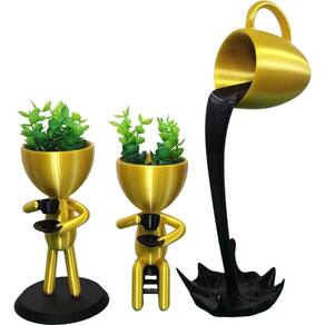 Decoração criativa e cheia de personalidade Este conjunto exclusivo combina uma peça elegante em formato de xícara derramando líquido, criando uma ilusão de movimento, com dois Vasinhos Bob Robert Tomando Café Com Plantas adoráveis em forma de personagens que seguram xícaras. Perfeitos para quem deseja um toque moderno e divertido na Decoração, são ideais para mesas, prateleiras ou espaços de convivência. Feitos com design inovador, eles transformam qualquer ambiente em uma verdadeira obra de arte Os Vasinhos Bob Robert Tomando Café Com Plantas e a Xícara Flutuante são perfeitos para quem valoriza a fusão entre natureza e design clássico.