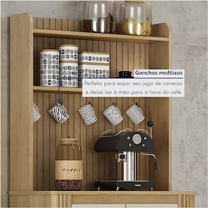 Adicione sofisticação ao seu ambiente com o nosso Cantinho do Café. Com detalhes fresados e cantos arredondados, ele traz um design moderno que se encaixa perfeitamente em qualquer ambiente. Seus pés em madeira maciça oferecem toque rústico de charme, enquanto as prateleiras são perfeitas para exibir suas peças decorativas. O suporte para xícara proporciona uma organização ideal para seus acessorios e coleções, tornando seu cantinho de café mais funcional e estiloso. Uma escolha perfeita para quem quer praticidade sem abrir mão de um visual elegante. O armário para cantinho de café é fácil de montar? Sim! Ele vem com um manual de instruções simples e todos os materiais necessários para a montagem, tornando o processo mais fácil e rápido.