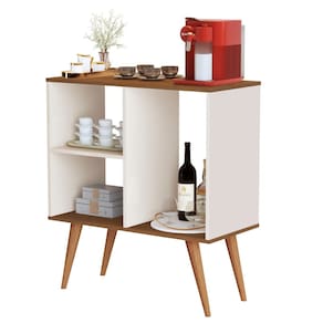 Cantinho do Café Axios com Nichos Off White / Canela Aparador de Sala Modelo Retro