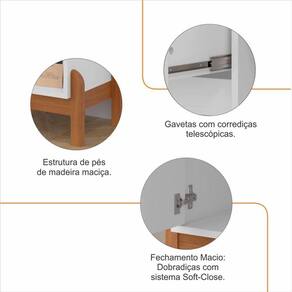 Material da estrutura: tampo e laterais em MDP de 15mm, porta em MDF de 15mm com pés de madeira;