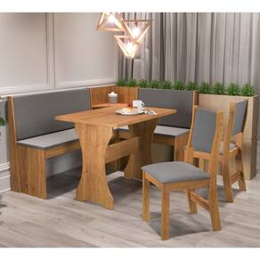 Características: 2 Cadeiras em MDP 35mm/MDF 15,18,45mm Capacidade acomoda de 3 a 5 pessoas Espuma D16 e D 26 Estrutura do Canto em MDP 15, 32 e 42 mm Peso suportado por cadeira até 80 kg cada Peso suportado no canto alemão até 270 kg por assento Prateleira funcional inclusa Revestimento tecido veludo Tampo em MDP 15mm pintado, com canto reto,suporta peso de até 50 kg distribuídos