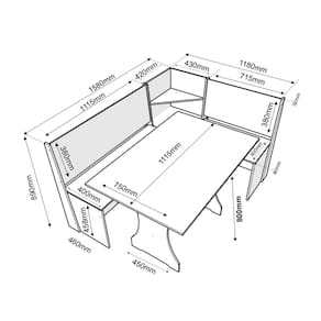 Dimensões Canto: Altura: 89 cm Largura 1: 158 cm Largura 2: 118 cm Profundidade: 46 cm Peso: 62,80 kg