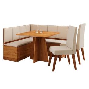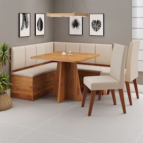 O Canto Alemao com Bau Syrah com 2 Cadeiras Milao Viero une design inteligente e alta funcionalidade para transformar seu ambiente. Gracas ao formato articulado, ele atua como um divisor de espacos, aproveitando cada centimetro com elegancia. A peca acomoda confortavelmente de 3 a 5 pessoas, ideal para encontros em familia ou recepcoes com amigos, estrutura em MDP e tampo de MDF de 18 mm, cujos cantos arredondados garantem seguranca e um visual sofisticado. As cadeiras, fabricadas em madeira de eucalipto, oferecem durabilidade e firmeza. O estofado, em tecido linho, adiciona um toque aconchegante e refinado. Alem do charme, o bau integrado oferece um compartimento extra para manter utensilios e objetos do dia a dia sempre a mao. Perfeito para cozinhas, salas de jantar e areas gourmet, este conjunto completo destaca-se pela versatilidade, conforto e estilo, valorizando qualquer decoracao.