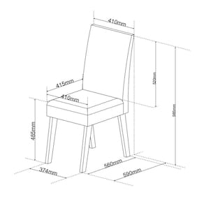 Caracteristicas: Estrutura da mesa em MDP Tampo pintado em MDF 18mm Cantos arredondados Mesa Suporta ate 50kg distribuidos. Estrutura da cadeira madeira eucalipto Assento com espuma D20 Densidade do assento D26 2 Cadeiras Cadeiras suporta ate 90kg 2 Bancos bau Canto Bau suporta ate 90kg Revestimento tecido linho Nao possui vidro