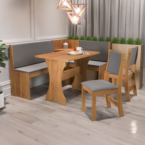 O(a) Canto Alemão Hard com 2 Cadeiras Marrom/Veludo Cinza - Viero Móveis é produzido em MDF e MDP na escala de brilho Semi-Brilho, e possui um grau de dificuldade de montagem: Médio.