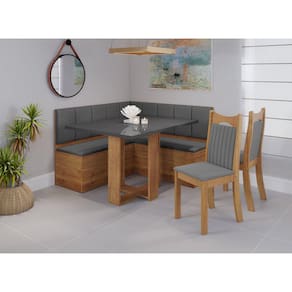 Um excelente produto para fazer seu espaço de refeições em sua cozinha. Prático e adaptável, o mesmo permite sanar a necessidade de um cantinho para refeições e convivência sem esforço e com muita qualidade. Além de ter como utilidade o baú, ainda pode ser um ótimo divisor de ambientes Medida da Mesa (A x L x P): A:79 x L:120 x P:80cm Peso da Mesa: 35,5 kg Mesa suporta até: 50.0000 Acabamento da Cadeira/Banco: Pintura UV Acabamento da Mesa: Pintura UV Acompanha Manual de Instalação: Sim Ambiente Principal: Sala de Jantar Cadeira/Banco estofada: Encosto e Assento Estofados Cadeira/Banco Estofada: Encosto e Assento Estofados Cadeira/Banco suporta até: 90.0000 codigo_ean: 7909903530719 Complexidade da Montagem: Média: pode ser montado por mais de uma pessoa e/ou necessite de maior conhecimento para montagem Cor: Mel/Grafite Cor do Produto: Mel/Grafite De Canto (Canto Alemão): Sim Enchimento do Assento: Espuma D-16 Enchimento do Encosto: Espuma D-12 Escala de Brilho: Semi-Brilho Espessura do Tampo: 25 mm Estrutura do Assento: MDP/Espuma Estrutura do Encosto: MDF/MDP Formato do Tampo: Retangular Informações Complementares: CANTO ALEMAO Itens Inclusos: 1 Canto, 1 Mesa, 2 Cadeiras, Manual De Montagem, Kit Ferragem Manual de Montagem e Instalação: https://product-hub-prd.madeiramadeira.com.br/885217/documents/c064aeb2-7780-4469-888f-e3e94cb92f351715373manualcantotexas.pdf Material da Base da Mesa: MDP Material da Estrutura da Cadeira: MDF/MDP Material do Tampo: Vidro/MDP Material Principal: MDF/MDP Material Principal das Cadeiras/Bancos: MDF/MDP Medida da Cadeira/Banco (A x L x P): A:98,5 X L:39,5 X P:50,2 Medida do Canto Alemão (A x L x P): Canto Maior: A:90,5 x L:137,5 x P:46,5 - Canto menor: A:90,5 x L:136 x P:46,5 Medida do Tampo (L x C x E): L:120 x P:80 x E:2,5cm Mesa Extensível: Não Necessita Montagem: Sim Origem do Produto: Nacional Peso da Cadeira/Banco: 6,75 kg Possui Apoio Para os Pés: Não Possui Vidro: Sim Quantidade de Cadeiras: 2 Quantidade de Lugares: 07 Recomendações de Uso, Manutenção e Limpeza: Limpar com pano levemente umedecido com água Revestimento da Cadeira/Banco: Veludo Sistema de Montagem: Parafusos, cavilhas Vidro Temperado: Sim
