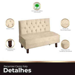 Elevando a sofisticação do seu espaço, apresentamos o Recamier Estofado Italy. Com um design estiloso, moderno e sofisticado, este recamier é mais do que um móvel, é uma expressão de elegância. Detalhes em captonês ao longo do encosto, complementados por botões de cristais, conferem um toque único. Sua versatilidade permite adornar não apenas quartos, mas também salas, recepções, cozinhas e restaurantes, proporcionando uma decoração inigualável. O Recamier Italy é o complemento perfeito para quem busca um toque de refinamento e estilo em qualquer ambiente. Invista em elegância com este móvel único.