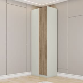 Modulado Seletto é completo e foi desenvolvido para atender as mais diversas necessidades de uso e espaço, várias possibilidades de combinações casal ou solteiro. Canto Reto Modulado 1 Porta. Estrutura em MDP de 15mm e Portas em MDF/BP de 15mm (fundo com 3mm), opção de montagem: Direita/ Esquerda, porta com dobradiças metálicas 35 mm com amortecimento, total de 2 prateleiras suportando até 8 kg cada, conta com calceiro de alumínio, puxadores de alça em alumínio na cor bronze, módulo 13 cm afastado da parede. Este móvel chegará na sua casa separado em 2 volumes.