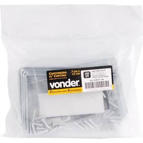 Conteúdo da embalagem 1 Pacote com 4 cantoneiras e 20 parafusos Aplicações e dicas de uso Indicada para suportes de trilho para cortina Destaques e diferenciais Prática e fácil de instalar. Acompanha parafusos para fixação. DETALHES TÉCNICOS