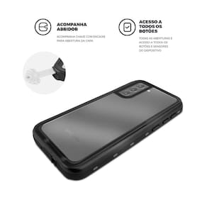 Capa À Prova D'Água Nautical Para Galaxy S21 Plus - GshieldA Capa Prova D'água para Samsung Galaxy S21 Plus, da Gorila Shield, é ideal para quem gosta de ir à praia, ao clube ou escutar música no chuveiro. Com este acessório seu celular ficará protegido contra os respingos Além disso, a capa ainda vem com uma alça stand, deixando-o inclinado. Essa posição é ideal para ver filmes, vídeos e séries. Observação: A Capa a prova dágua foi projetada para suportar imersão em água por até 2 metros durante 1 hora.Material: Polipropileno de alta densidade - Não Amarela Marca: GshieldDimensões: Dimensões exatas do aparelhoProteção: Contra impactos e riscos à telaCertificações: Us MilitaryNão apropriada para o uso no dia a diaCOMPATIBILIDADESamsung Galaxy S21 Plus