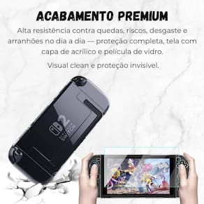 Capa acrílico premium para nintendo switch 2 2025 + película Cor: transparente proteja seu novo nintendo switch 2 com estilo e segurança com a case protetora de acrílico, especialmente projetada para oferecer máxima proteção sem comprometer o design elegante do seu console. adquira a case protetora de acrílico para o novo nintendo switch 2 e garanta uma experiência de jogo sem preocupações, onde quer que você esteja. ------------------ ------------------ como é a instalação da case protetora de acrílico R: basta encaixar a case e pronto, uma aplicação simples e segura é fácil de colocar e remover. posso utilizar a case junto com a película de vidro R: sim, ambos podem serem utilizadas juntos. a case interfere nas funcionalidades do nintendo switch 2, como o acesso aos botões e portas R: não, a case foi projetada com precisão para garantir acesso completo a todos os botões, portas e funcionalidades do console. essa case é compatível com outras versões do nintendo switch R: não. Esta case é projetada exclusivamente para o novo nintendo switch 2 a case escorrega nas mãos R: não mesmo sendo de acrílico liso, possui pegada firme e confortável, que acompanha o formato das mãos, oferecendo conforto mesmo em longas sessões de jogo. ------------------ Especificações ------------------ Material: acrílico transparente de alta qualidade Design: leve e ergonômico Proteção: resistente a impactos e arranhões Compatibilidade: exclusivamente para o novo nintendo switch 2 ------------------ Conteúdo ------------------ 1x case para nintendo switch 2. 1x película de vidro. 1x kit limpeza. Anúncio referente a case + película. Acessórios que ambientam as fotos não inclusos. ------------------ Apresentação: ------------------ - qualidade garantida. - atendimento qualificado. - enviamos para todo o brasil. - compra garantida. - despachamos em até 1 dia útil após confirmação do pagamento Garantimos a devolução por arrependimento em até 7 dias, após o recebimento e de 15 dias contra defeitos de fabricação. Marca: Não Informado