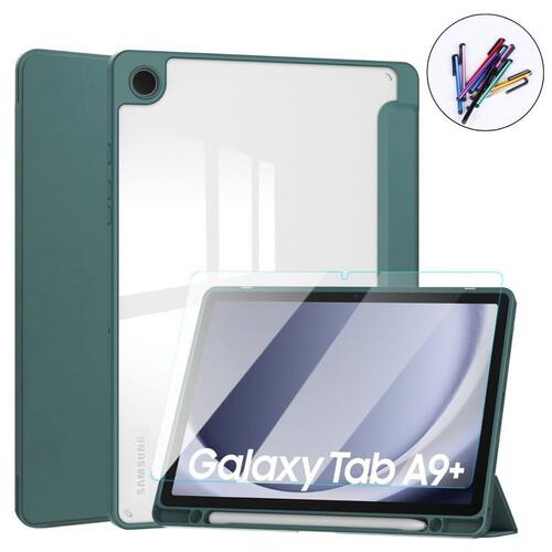 Capa acrílico + vidro + caneta para tab samsung a9+ 11 x210 Cores: verde dark essa capa incrível oferece uma variedade de funcionalidades inteligentes para garantir a segurança do seu tablet. Com sua estrutura de acrílico resistente e durável, ela é especialmente projetada para proteger seu dispositivo contra quedas acidentais, mantendo-o seguro em qualquer Situação. além da proteção robusta, a parte interna da capa é revestida com microfibra suave, cuidadosamente selecionada para criar uma barreira protetora, mantendo a tela do seu tablet livre de riscos e quedas e sua parte traseira também. Deixando seu tablet lindo e protegido ao mesmo tempo, e sem preocupação. Assim, você pode desfrutar de uma tela impecável e brilhante a qualquer momento. a capa proporciona a versatilidade de ser utilizada em diversos ângulos, permitindo que você ajuste seu dispositivo de acordo com sua preferência, garantindo uma experiência de uso ideal em qualquer situação. ------------------ Atenção ------------------ Retire a película protetora na parte traseira da capa. A capa não amarela. Compatível com tab a9+ 11 polegadas x210 x216 2023 . ------------------ ------------------ posso usar a capa com película R: sim, você pode usar a capa junto com a película sem problema, a case não interfere no uso da película. posso remover facilmente a capa magnética quando precisar R: sim, a capa magnética é projetada para ser facilmente removível quando necessário, permitindo que você tenha acesso rápido ao seu dispositivo sem complicações. a capa oferece proteção contra arranhões e quedas acidentais R: sim, a capa giratória de material sintético é projetada para fornecer proteção abrangente ao seu tablet. Ela envolve o dispositivo, protegendo a tela e a parte traseira contra arranhões, poeira e pequenos impactos. o modo auto-sleep precisa ser ativado R: não, ao colocar a capa corretamente no tablet, estará funcionando corretamente, assim que você abre a case a tela liga e ao fechar a tela desliga automaticamente. ------------------ Especificações ------------------ Material interno: camurça. Material traseiro: acrílico. Compatível com tab a9+ 11 polegadas x210 x216 2023 . ------------------ Conteúdo ------------------ 1x capa magnética. Anúncio referente a case Tablet não incluso Garantimos a devolução por arrependimento em até 7 dias, após o recebimento e de 15 dias contra defeitos de fabricação. Marca: Não Informado