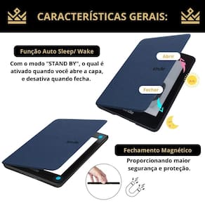 - interior aveludado: O interior aveludado oferece uma sensação suave ao toque e protege a tela do seu kindle contra arranhões.
