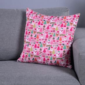 Capa Almofada Natalina 45x45cm Zíper Rosa - Melhor Qualidade