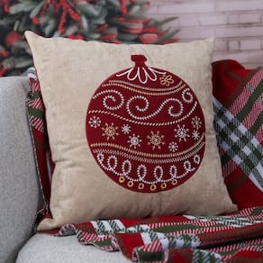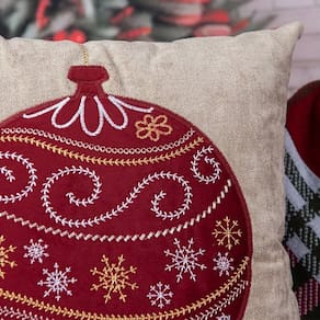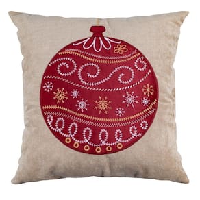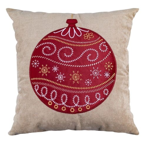 Capa Almofada Natalina Aveludada Bordada Enfeite Bola de Natal 4x43cm Bege/Vermelho