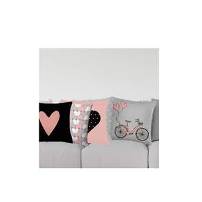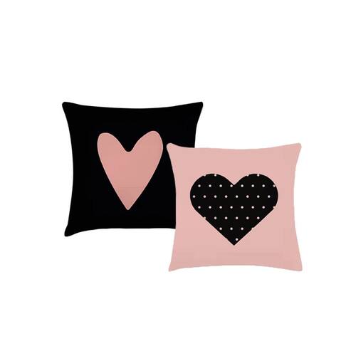 Capa Almofada Preta Coracao Rosa 40cm Rose Poa 2un