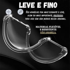 Capa anti impacto com bordas reforçadas e relevo na câmera e laterais para proteção contra quedas e arranhões. Material flexível que não amarela com o tempo. Compatível com películas.Características