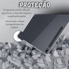 A capinha transparente com borda reforçada possui um design estruturado que incorpora materiais como TPU poliuretano termoplástico e polímeros resistentes, proporcionando absorção e dissipação do impacto de quedas, protegendo assim o tablet contra danos.