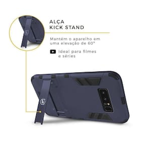 A Capa Armor possui um design leve, fino e é extremamente resistente.Produzida sob a certificação Internacional Militar Shield tem material antiderrapante nas laterais, proteção efetiva contra respingos e pode suportar condições ambientais extremas. Desenvolvida com a mais alta tecnologia de absorção para proteger seu aparelho de impactos. Acessório vem com uma alça kick stand para deixar o dispositivo em uma inclinação de até 60.