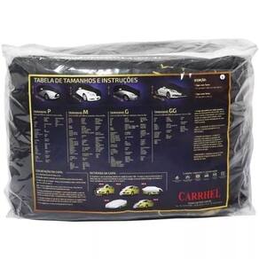 Capa de couro ecológico Protetora Com Forro Total Para Carro PA capas carrhel são fabricadas com material couro ecológico com tratamento Anti U.V. o que proporciona proteção máxima contra raios solares e chuva. O material dessa capa dura até 5 vezes mais do que as convencionais prata do mercado. Sua forração interna conhecida como pelúcia não risca a lataria do veículo. Única capa no mercado com material courvim que é 100% impermeável, pois as capas de couro de outras marcas são costuradas, diferente da nossa que passa por um processo automatizado de solda o que veda completamente toda entrada de água por cima da capa.As capas de courvim couro ecológico podem ter duração de até 5 anos desde que as instruções de uso na embalagem sejam cumpridas corretamente.Recomendamos essa capa para você que tem um zelo maior pelo seu veículo, com ela você pode proteger seu bem material contra agentes que danificam a pintura e o verniz da lataria do seu carro. Essa capa pode representar economia significativa no seu bolso, considerando que a mesma pode amenizar desgaste na pintura causado por raios U.V e chuva. Benefícios:100% Impermeável e resistente100% ForradaPode ser usada em garagem coberta e descobertaProtege seu veículo do sol, chuva, dejetos de aves e poeiraMáxima proteção contra raios U.V.Conserva a pintura do seu veículo por mais tempoManuseio fácil e práticoEmenda soldada por processo automatizadoPossui elástico nas bordas, facilitando sua colocação e fixação. Composição:Parte superior Capa 100% PVC.Parte inferior Forro 100% Poliéster.Cuidados especiais e conservação: A capa não poderá ser usada quando: a pintura do veículo apresentar falta de brilho, falta de verniz, manchas e fundos aparentes O veículo deverá estar frio e seco ao colocar a capa Recolha a antena e acessórios que se encontra na parte externa do veículo Somente lavagem manual Não usar alvejante a base de cloro Proibido usar secadora Não passar Secar pendurada sem torcer Nunca deixar a capa em contato com o carro úmido Recomenda-se quando possível, retirar a capa semanalmente para que seja garantida a renovação do ar contido na parte interna da capa. Limpeza ideal: a limpeza da capa poderá ser executada com a capa corretamente colocada sobre o veículo. Lave com água fria e detergente neutro, então aguarde sua secagem para o recolhimento.Manutenção e cuidados especiais também estão impresso na etiqueta fixada na parte interna da capa.Garantia do Produto:90 dias Contra defeitos provenientes de fabricaçãoA garantia fica nula quando o usuário descumprir as orientações no manual e na etiqueta parte interior da capa.Aplicação:Tamanho p: Carros de até 4,05m de comprimento. altura de 1,36m.
