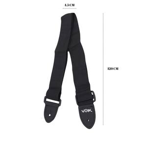 Correia: • Marca: Voik • Cor: Preto • Modelo: BK-2000 • Material: Nylon e couro sintetíco • Largura da correia: 4,5 cm • Tamanho mínimo: 0,67 cm • Tamanho máximo: 1,16 m • Peso da correia: 0,022 kg