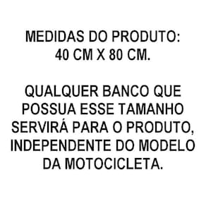 Descrição: - Não esquenta; - Permite a circulação do ar; - Impermeável; - Material anatômico; - Anti derrapante; - Material ; - Fácil instalação; - Compatível com bancos de várias motos. - A capa é instalada em cima da capa existente sem danificá-la e é presa através de uma faixa de fixação. As vantagens de se ter uma rede de nylon dupla camada são: 1 Impermeabilidade, pois ela molhando ela não retém água, além de ser durável, fácil de instalar e segura para uso, fresca, seca e confortável para os pilotos. 2 Permeabilidade ao ar pois o seu formato como rede permite maior circulação do ar. 3 Isolamento contra aquecimento solar o que permite que se sente na moto mesmo que ela esteja parada no sol pois o banco não estará quente. Não precisa tirar a capa do banco de sua moto, ela vai por cima encaixando-se com perfeição em qualquer tipo de banco por meio de cintas de fixação, qualquer pessoa pode fazer o serviço, necessitando somente retirar o banco da moto para fazer a instalação. Medidas aproximadas: Comprimento máximo: 80 cm Largura máxima: 37 cm. Marca: Não Informado Ean: 7907291390458