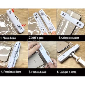 Capa Bolsa A Prova Dágua Impermeável Universal Para Celular - Branco Utilize a capa para guardar o celular ou qualquer outro objeto que caiba dentro. Pode ser usada em praias, piscinas, clubes, cachoeiras e diversos outros locais. Oferecendo proteção ao seu celular ou objeto contra a água e sujeira. Tire suas fotos embaixo d'água com total segurança e qualidade a qualidade das fotos está diretamente ligada a qualidade de sua câmera, claridade em baixo d'água - sugerimos não utilizar o flash da camera para melhor nitidez das fotos. Com este produto você pode utilizar debaixo d'agua, podendo tirar fotos, tocar na tela, etc. Compatível em celulares com tela de 4 a 6,5 verificar o tamanho do seu celular A medida da tela é feita na diagonal entre um canto a outro. 100% Impermeável Total Segurança Contra Água, Riscos, Poeiras, Areia Etc. Resistente até 20 metros na água. Tela Preservada a Sensibilidade Total Vedação Inportante: Para testar seu produto coloque um papel dentro da capa, feche a capa e mergulhe em algum recipiente com agua e a deixe submersa por cerca de 10 a 15 minutos. Após este período, retire a capa, seque a mesma, e após este procedimento , retire o papel de dentro para conferir se o mesmo se encontra totalmente seco. Somente após este teste a capa deve ser usada com aparelhos eletrônicos. Não nos responsabilizamos por danos causados a aparelhos, uma vez que o teste de segurança é obrigatório antes de usar o produto. Material: PVC macio - Protege seu Smartphone de água, areia, poeira e sujeira. Boa para praia, natação, mergulho, atividades em ambientes abertos e sujeitos a chuva ou sujeira, acompanha cordão de segurança. Profundidade máxima sugerida: 3 metros, parte frontal transparente e sensível a toque. Tamanho interno da capa: 16,5 cm de altura x 10,5 cm de largura Itens Inclusos 1 Capa Impermeável 1 Alça