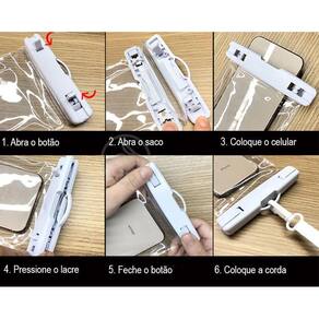 Material: PVC macio - Protege seu Smartphone de água, areia, poeira e sujeira. Boa para praia, natação, mergulho, atividades em ambientes abertos e sujeitos a chuva ou sujeira, acompanha cordão de segurança.