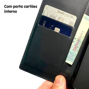 Capinha Carteira A capa carteira é para quem gosta de elegância, estilo e proteção. Muito mais que uma capa funciona também como uma carteira com espaço para colocar cartão. Protege totalmente seu aparelho de quedas e riscos. produzido em material sintético. Ean: 7898945711418