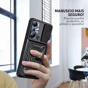 Capa capinha case para infinix hot 20 - protetora resistente anti impacto queda armadura militar Cor: preto - alta proteção - ótimo acabamento com alto relevo na parte que protege a câmera;