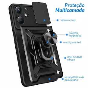 Capa capinha case para infinix hot 40i - protetora resistente anti impacto queda armadura militar cor:preto - alta proteção - ótimo acabamento com alto relevo na parte que protege a câmera;
