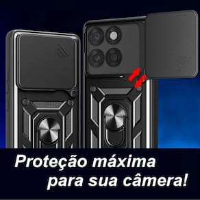 Capa Capinha Case para Motorola Edge 60 Fusion - Protetora Resistente Anti Impacto Queda Armadura Militar Cor:Preto Capa Protetora Blindada com Suporte e Tampa de Lente - Alta Proteção e Funcionalidade