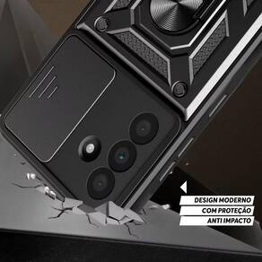 Alta proteção com alto relevo na parte que protege a câmera; proteção anti impacto de dupla camada; anel de dedo e metal imbutido para aderir em imã; anel ajustável para função de base; encaixe 100% perfeito; slide cover para maior proteção das câmeras e maior privacidade; não carrega por indução.Características