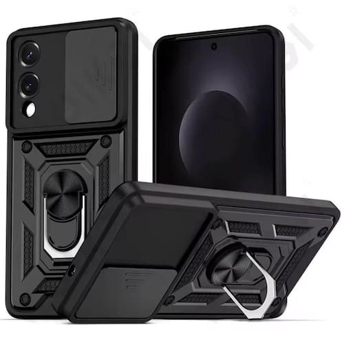Capa Capinha Case para Samsung Galaxy S25 Edge - Protetora Resistente Anti Impacto Queda Armadura Militar Cor:Preto Capa Protetora Blindada com Suporte e Tampa de Lente - Alta Proteção e Funcionalidade