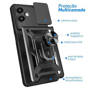 Capa capinha case para samsung galaxy a06 - protetora resistente anti impacto queda armadura militar cor:preto - alta proteção - ótimo acabamento com alto relevo na parte que protege a câmera;