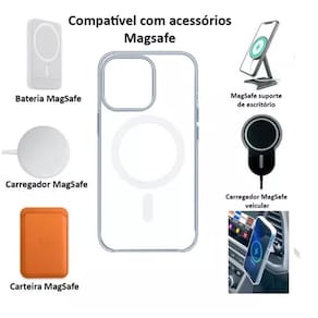 Essa capinha permite carregamento por indução e segurança (MagSafe = magnetismo seguro) e em alta velocidade, além disso tem design antichoque (com proteção interna extra nas bordas). Capa transparente e com design moderno, possibilitando que seja vísivel a cor do seu celular e os detalhes do mesmo, valorizando e imprimindo status Esse anúncio foi criado para vender kits do iPhone 14, iPhone 14 Pro, iPhone 14 Plus e iPhone 14 Pro Max . ITENS INCLUSOS NO KIT: 1 (uma) capinha , transparente e antichoque,
