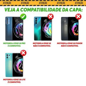 Essa capa é compatível exclusivamente com o Motorola Moto Edge 20 Pro, não servindo em outras versões. Sua cor é preta, combinando perfeitamente com o design do seu smartphone.