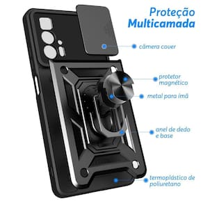 A Capa Case Motorola Moto Edge 20 Pro - Protetora Militar possui um encaixe perfeito para o seu dispositivo, garantindo que todas as funções e botões funcionem normalmente. Ela também possui um slide cover para maior proteção das câmeras, proporcionando maior privacidade e proteção.